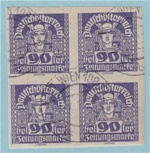 AUSTRIA P44 NEWSPAPER STAMPS - BLOCK OF FOUR - USED - Y793
